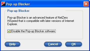 To Disable the Pop-up Blocker: - Click the Pop-up Blocker icon on the NetZero HiSpeed Toolbar.