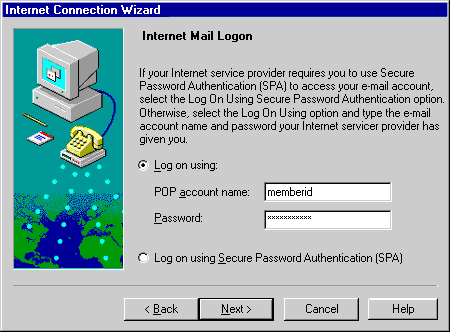 Warning! Do not select Log on using Secure Password Authentication.  - In the POP account name text box, type your email address without @netzero.com.
