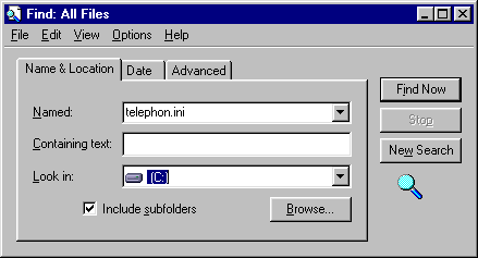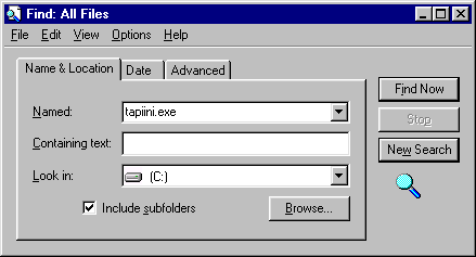 How to reset the TAPI initialization file - Click on the Windows Start button, point to Find and select Files or Folders.
