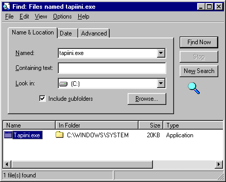 - In the Search Results pane, double-click the file tapiini.exe and close the Find window by clicking the X in the upper right hand corner.