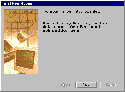 - Double-click the Modem Control Panel. A window will appear saying, "Windows will now try to detect your modem."