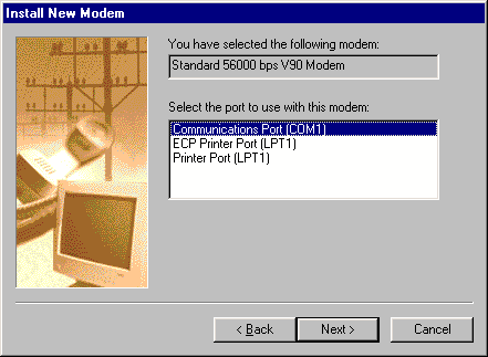 - Under Select the port to use with this modem, select the port that you remember from step 4 above (usually COM2).
