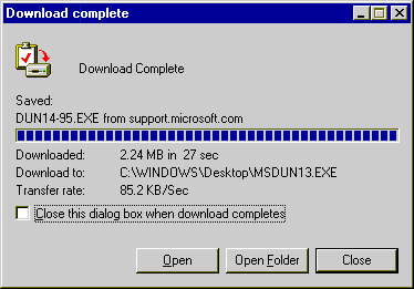 Note: You may be prompted for your Windows 95 CD-ROM to complete the installation. - Click here to download Microsoft Dial-up Networking.