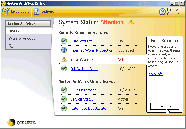 How do I Enable or Disable Email Scanning in Norton AntiVirus Online? Email Scanning helps you scan Incoming and Outgoing emails and provides protection against potentially harmful emails. To Enable Email Scanning in Norton AntiVirus Online, please follow the steps below: - Double-click the Norton AntiVirus icon on the desktop.